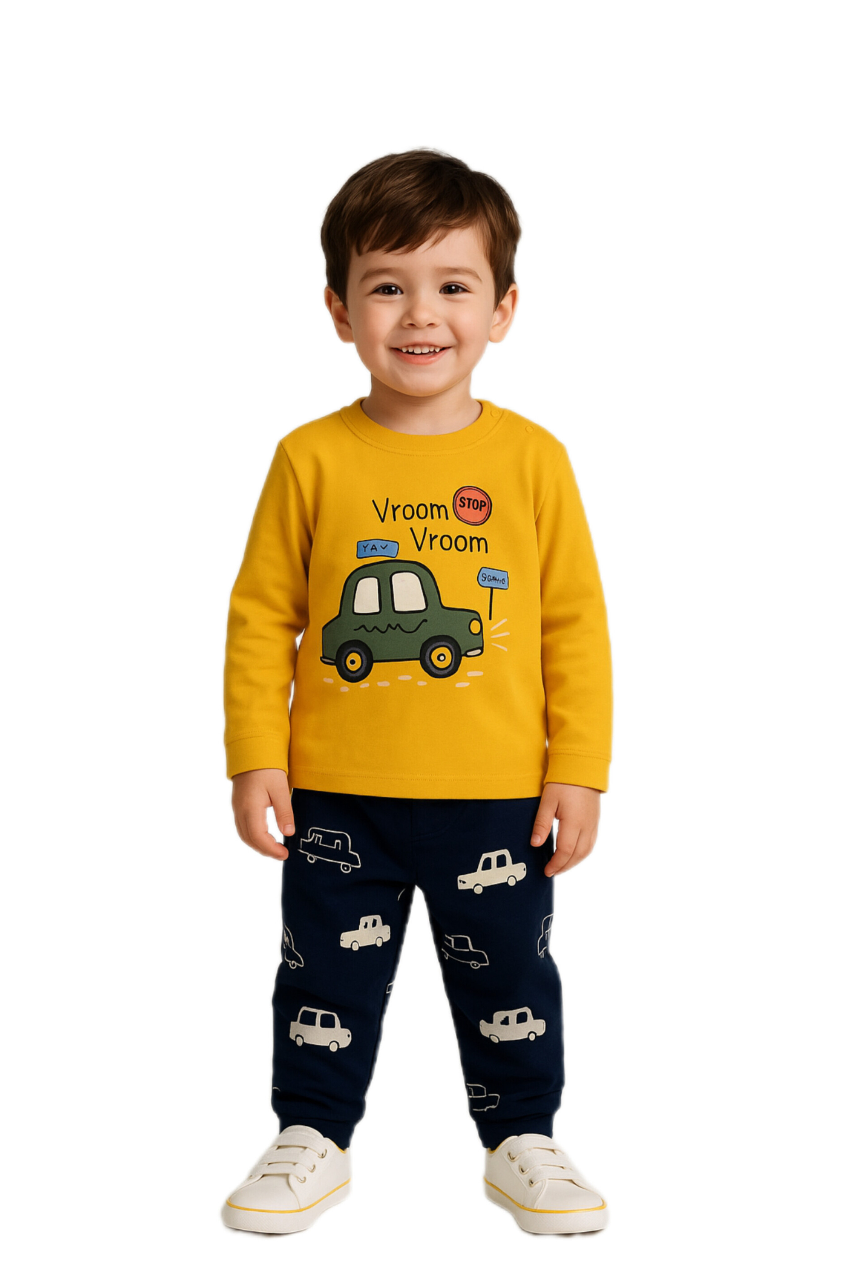 بلوز وشلوار آستین بلند پسرانه طرح ماشین